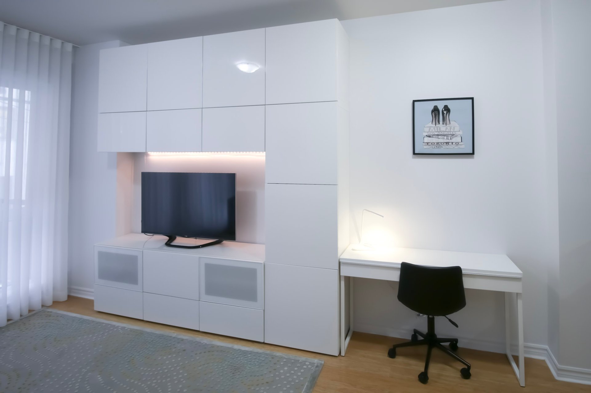 Inclus : Réfrigérateur, cuisinière, laveuse, sécheuse, lave-vaisselle, machine à café, télévision, meubles (lit, canapé, tapis, etc.), rideaux, internet.
