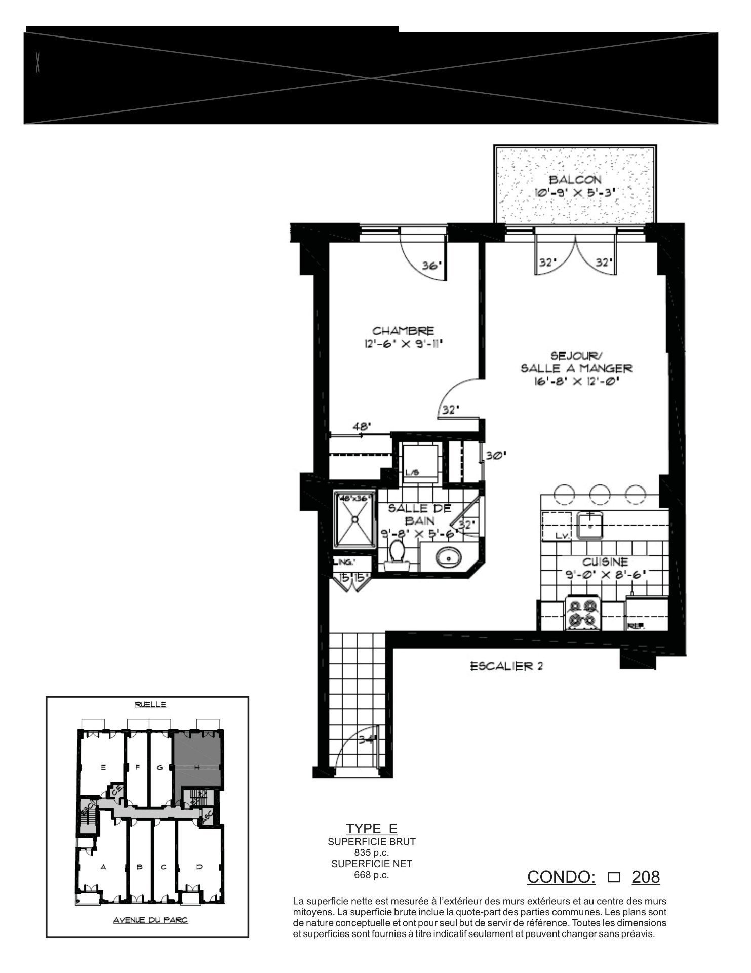 | Salon | 16.8 x 12.0 P | 2ième étage | Bois |